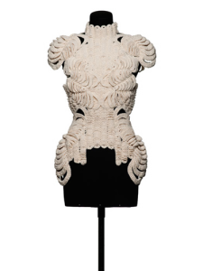It is interesting to note that even under this more high-tech oriented definition, the Fashion Industry has already been working hard on developing Additive Manufacturing in the production of the ‘seamless garment’. 3D knitting involves a computerized circular knitting machine, and allows for mass production of a complete 3D knitted garment seamlessly using a digital file. While used for ages in production of smaller, simpler pieces, this technology has been in research stages for the past few years in developing the capacity of creating larger seamless garments in a range of textures and materials.